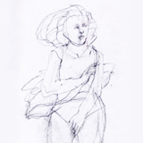 Voordat ik een beeld op het doek zet heb ik tientallen schetsen en krabbels gemaakt. Het is een zoektocht om tot het goede beeld te komen. Soms is het beeld directer en gekoppeld aan een tekst. Het beeld is semirealistisch.